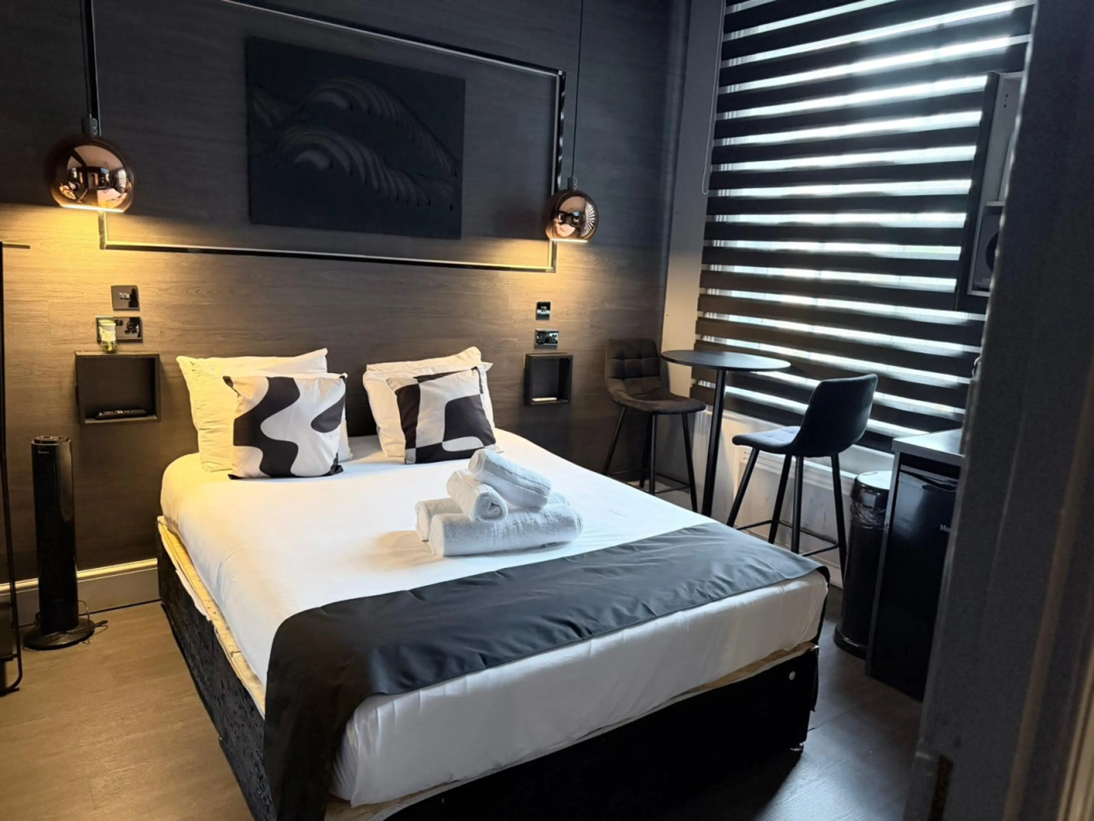 Negative: As soon as you walked in on the left there was a room which was open with a whole in the ceiling looks like there was a leak. We then Entered our studio and It smelt bad of mould and damp. Kept waking up due to damp couldn’t breathe very well. Didn’t help my COPD and shower wasn’t very strong. Cheap shower gel and shampoo and I payed £225.00 not worth it at all. Looks I was helping to pay for the damage that has been made to the property. As a courtesy would like some money back.